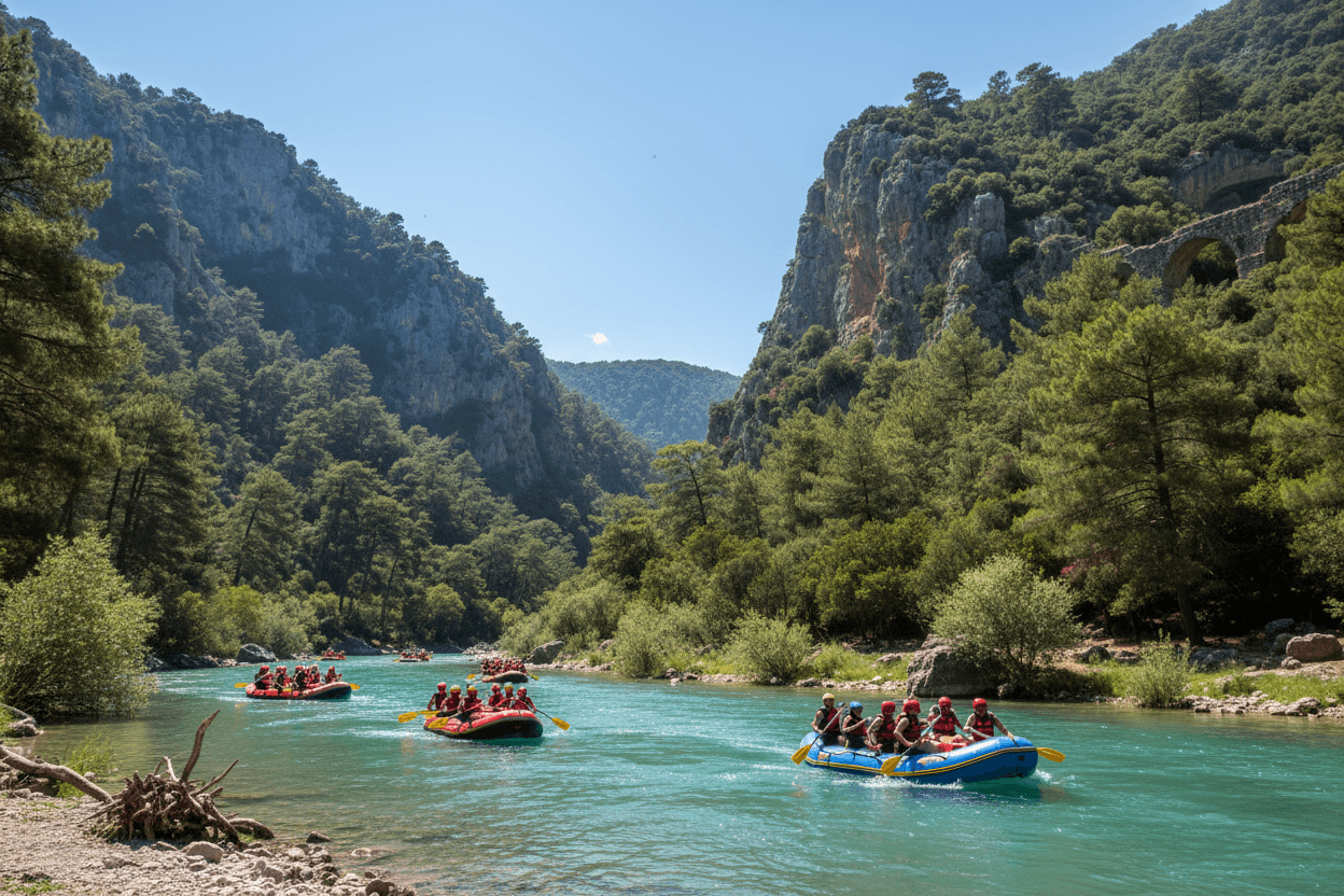 Die atemberaubende Naturkulisse in der Nähe von Belek ist ein Paradies für Abenteurer und Entdecker. Ein absolutes Highlight sind die Rafting-Touren im Köprülü-Canyon-Nationalpark, bei denen Sie auf dem kristallklaren Fluss durch eine spektakuläre Schlucht paddeln. Wer lieber festen Boden unter den Füßen hat, kann bei einer Jeep-Safari das raue Taurusgebirge erkunden, versteckte Dörfer besuchen und atemberaubende Panoramablicke genießen.