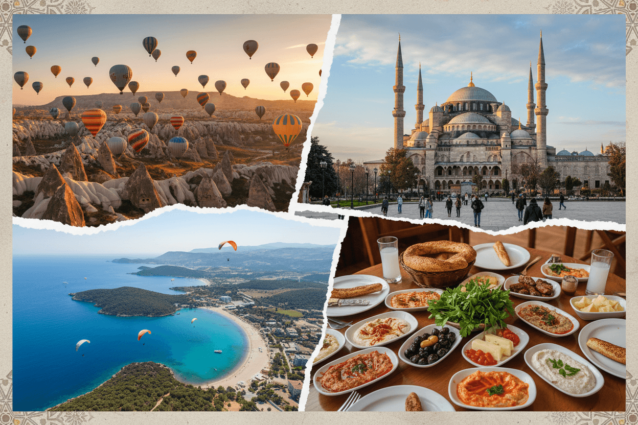 Dieser umfassende Guide begleitet Sie auf Ihrer Entdeckungsreise durch die vielfältigen Facetten der Türkei. Wir tauchen ein in die reiche Kultur und ihre tief verwurzelten Traditionen, erkunden die spektakulären Naturlandschaften, genießen die weltberühmte Gastronomie und spüren den historischen Schätzen nach, die an jeder Ecke warten. Mit unseren praktischen Tipps sind Sie bestens für Ihren perfekten Türkei Urlaub vorbereitet.