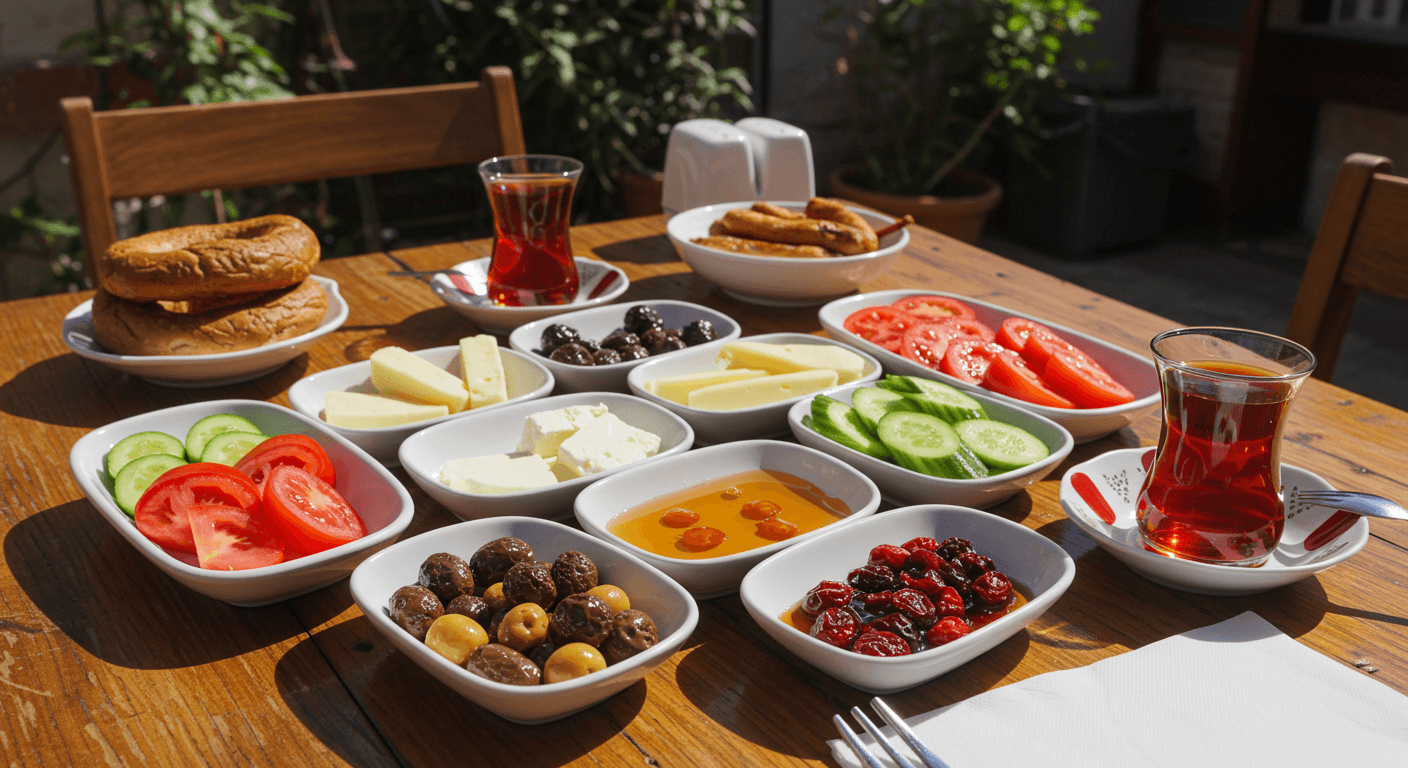 Eine Reise in die Türkei ist auch eine kulinarische Entdeckungsreise. Die türkische Küche ist weltweit für ihre Vielfalt und ihren Geschmack bekannt. Beginnen Sie Ihren Tag mit einem üppigen türkischen Frühstück (kahvaltı) mit Oliven, Käse, Tomaten, Gurken, Eiern, Honig und frischem Brot. Probieren Sie unbedingt Kebabs in all ihren Variationen, von Adana bis Urfa, und kosten Sie Mezze (Vorspeisen) wie Hummus, Haydari und Sigara Böreği.