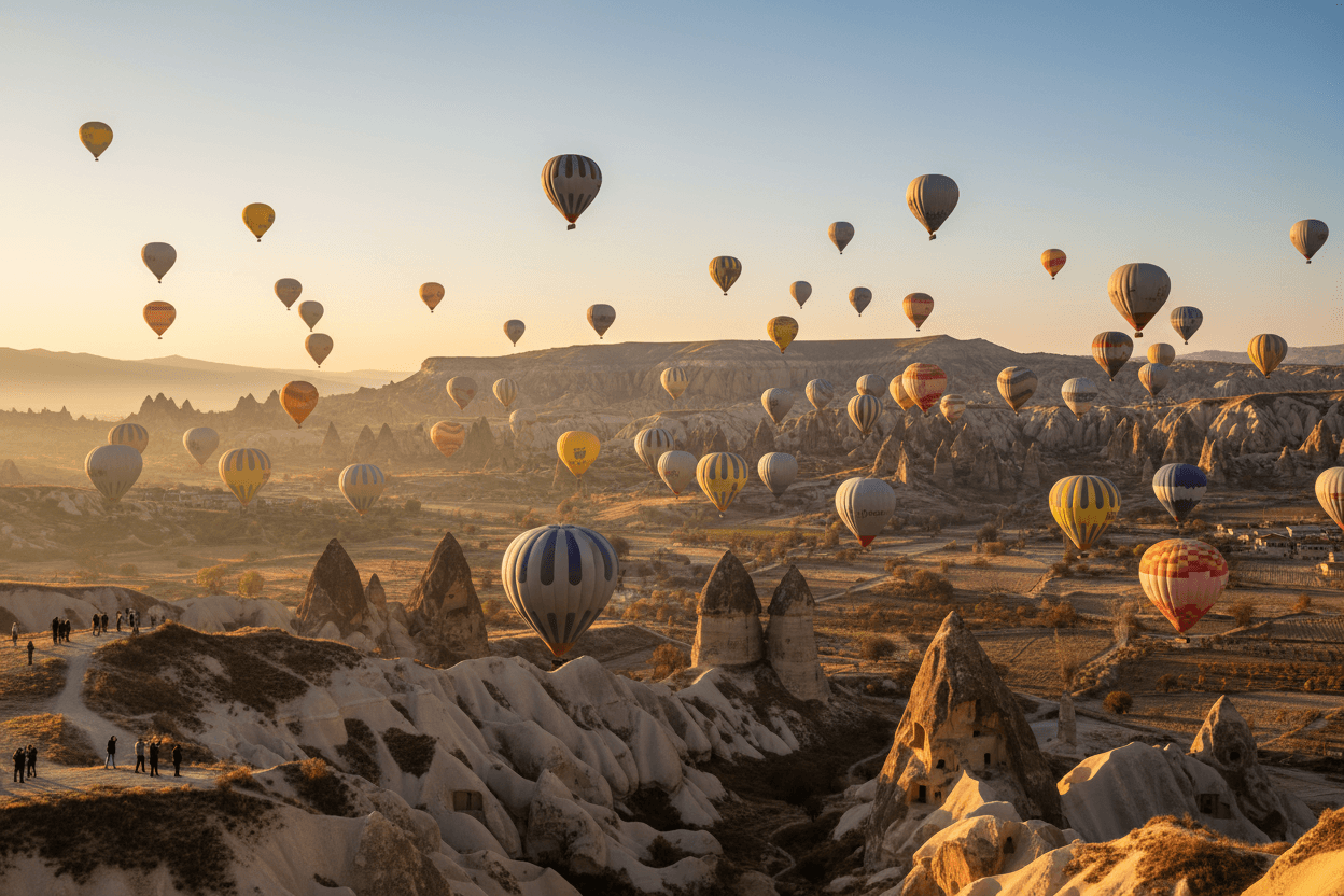 Die schiere Anzahl der gleichzeitig aufsteigenden Ballons ist überwältigend. An einem einzigen Morgen können bis zu 150 Ballons den Horizont zieren, was die Kappadokien Ballonbeobachtung zu einem der meistfotografierten Ereignisse der Welt macht. Ob vom Boden aus oder bei einem Flug selbst – dieses Erlebnis bleibt unvergesslich und ist ein absolutes Highlight jeder Türkei-Reise.