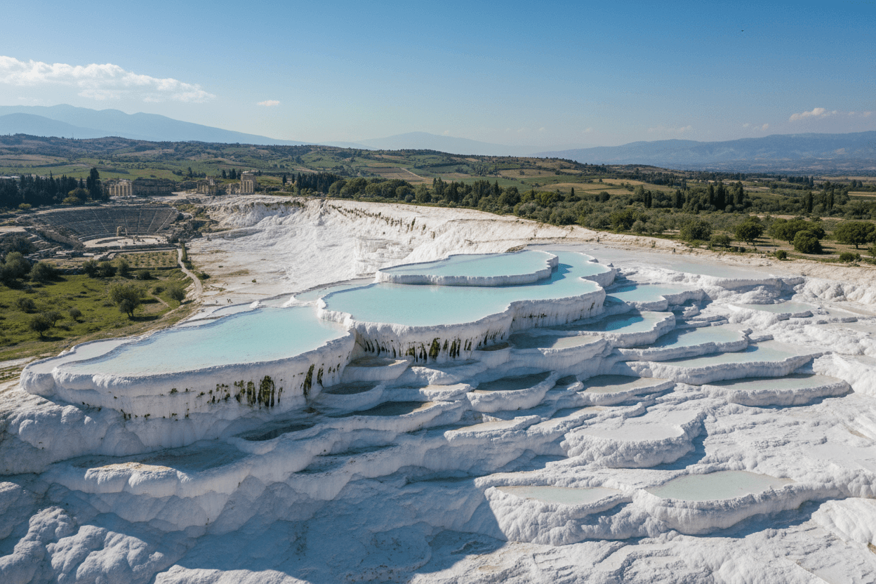 Die Pamukkale Travertinen in Denizli sind ein Anblick, der sich tief in das Gedächtnis einprägt und Reisende aus aller Welt fasziniert. Diese einzigartige Landschaft aus blendend weißen Kalkterrassen, gefüllt mit warmem, mineralreichem Wasser, ist nicht umsonst ein UNESCO-Weltkulturerbe. Für deutsche Reisende, die die Türkei besuchen möchten, bietet Pamukkale eine faszinierende Mischung aus Naturwunder, antiker Geschichte und einem tiefgreifenden kulturellen Erlebnis.